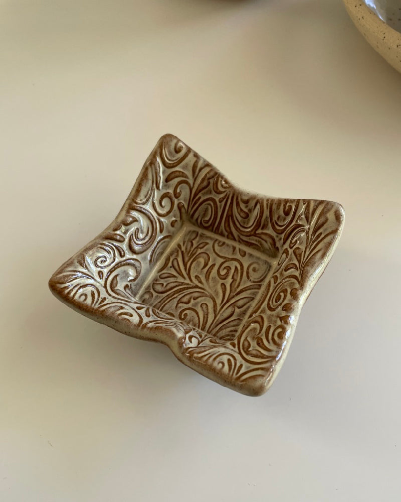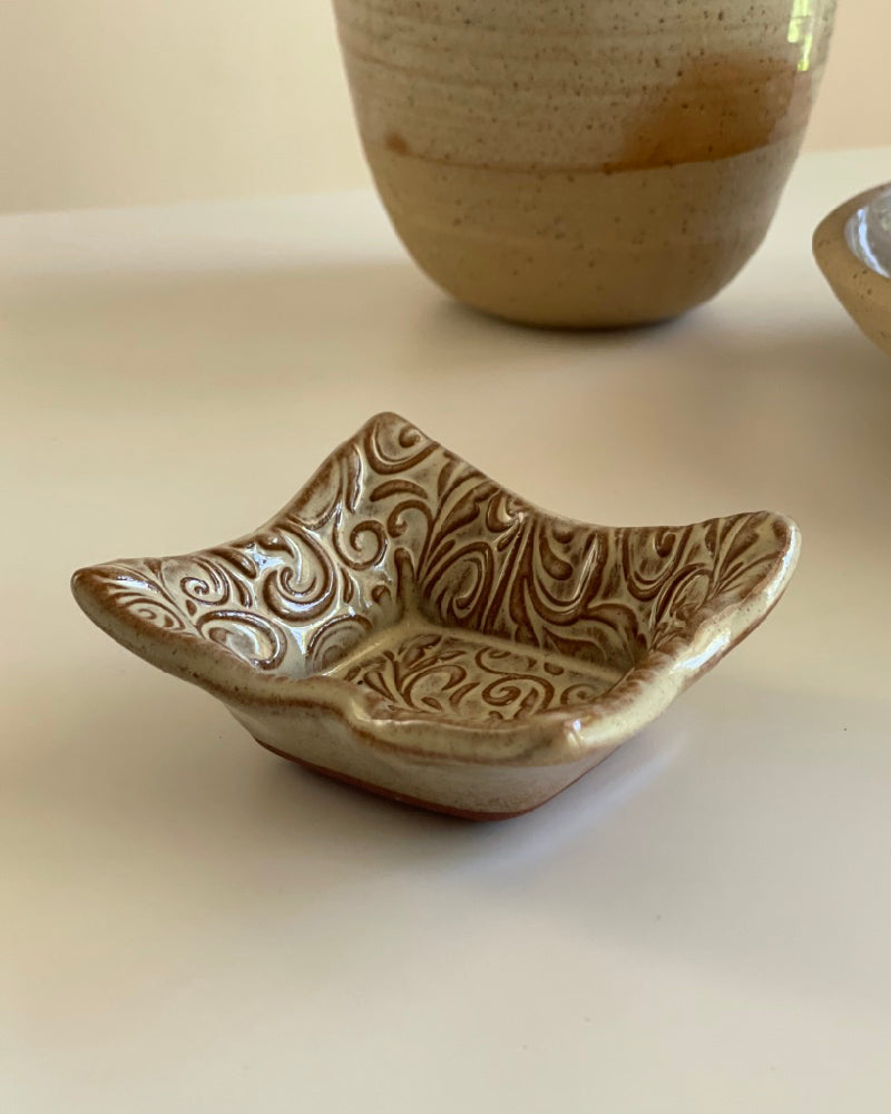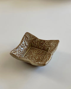Gorgeous wee dish with beautiful flourish design. Handcrafted by Michelle Bow with locally sourced clays.